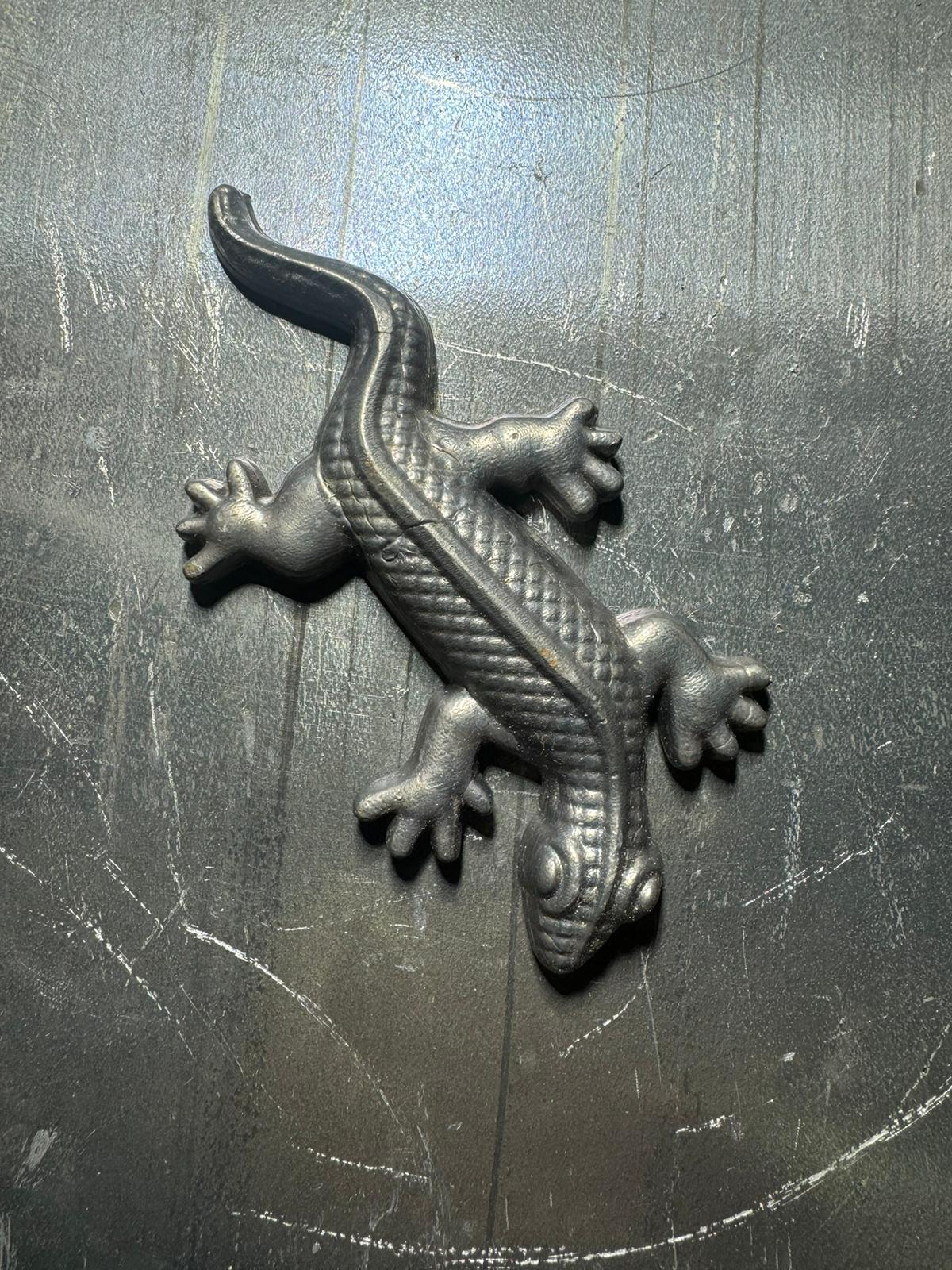 A striking metal lizard sculpture with lifelike details and a hand-finished look. Ideal for adding a fun and natural element to your home or garden space. Easily mounted or displayed as a unique accent piece.